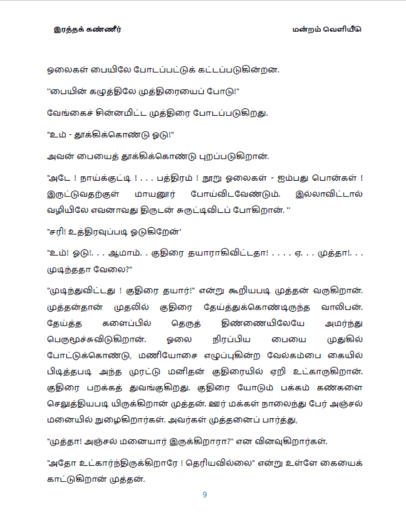 “உம்! ஓடு!. . . ஆமாம். . குதிரை தயாராகிவிட்டதா! . . . . ஏ. . . முத்தா!. . . முடிந்ததா வேலை?”